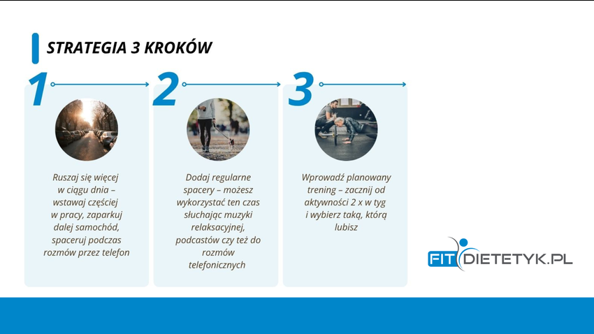 1️⃣ Ruszaj się więcej w ciągu dnia, wstawaj częściej, wybieraj schody, zaparkuj trochę dalej