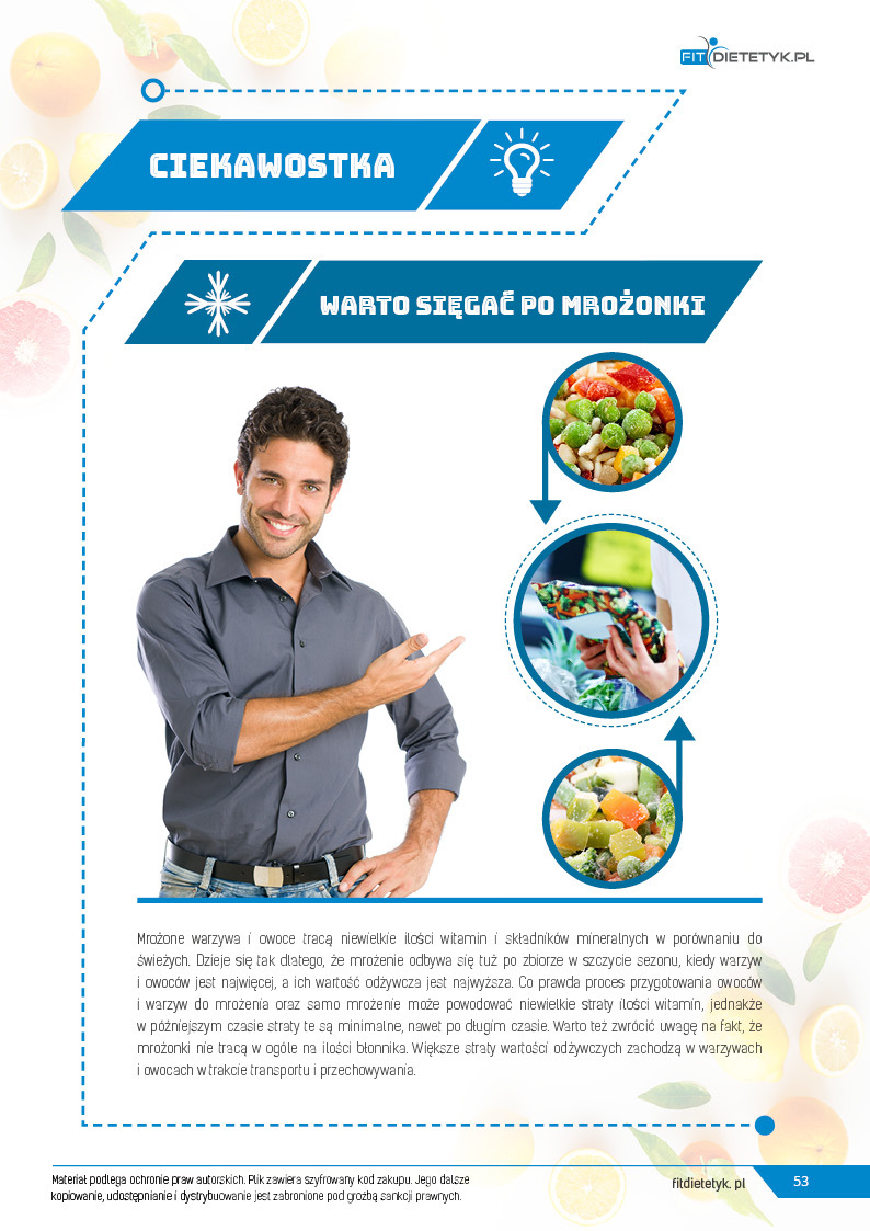 Dodatkowo do opracowanego planu dietetycznego otrzymasz atrakcyjnie przygotowane ciekawostki i wiadomości żywieniowe, które mam nadzieję pozwolą Ci zrozumieć wiele spraw związanych z nurtującym Cię problemem, a także przyczynią się do zwiększenia ogólnej wiedzy żywieniowej.
