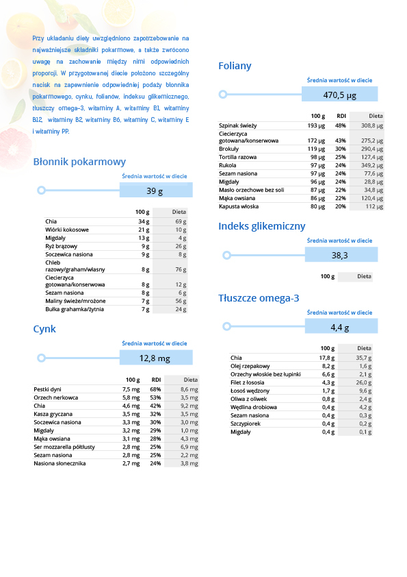 Opracowanie obok 30-dniowego jadłospisu zawiera także obszerny poradnik omawiający m.in. takie zagadnienia jak: